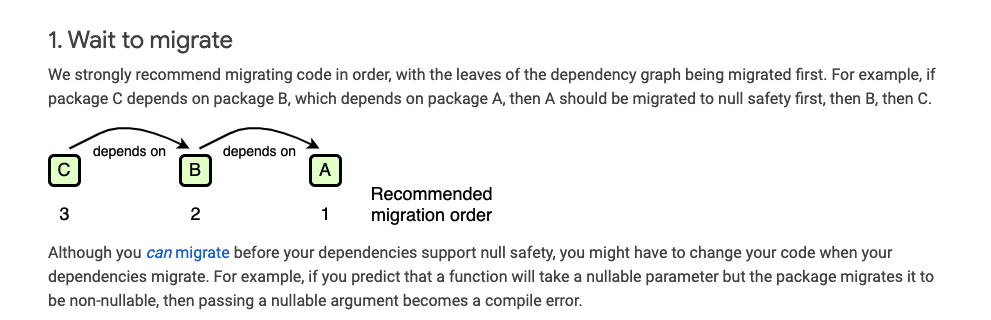 公式が示す以下の図にある通り、Null Safetyへの以降は依存先のパッケージから対応を進めて行くためです。